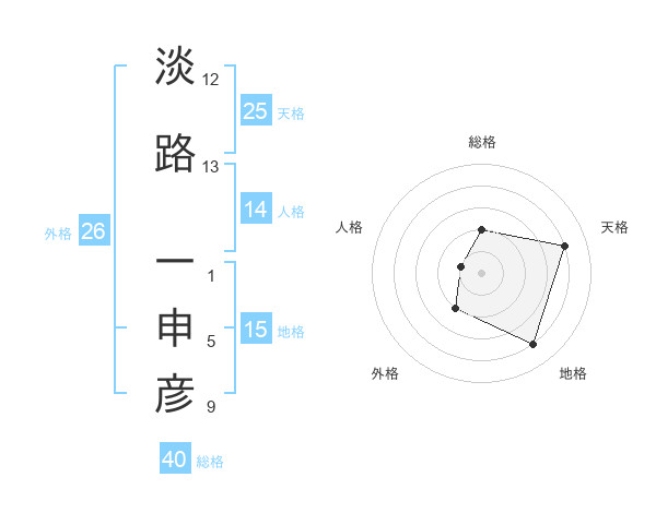淡路 一申彦さんの総格は40画の2点!