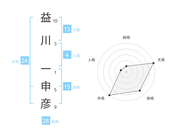 益川 一申彦さんの天格は13画の5点!