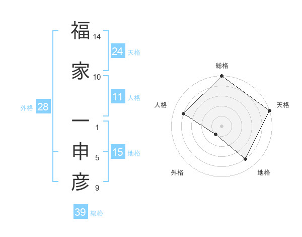 福家 一申彦さんを姓名の画数から五運を鑑定