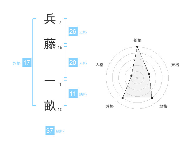 兵藤 一畝さんを姓名の画数から五運を鑑定