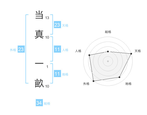 当真 一畝さんの天格は23画の5点!
