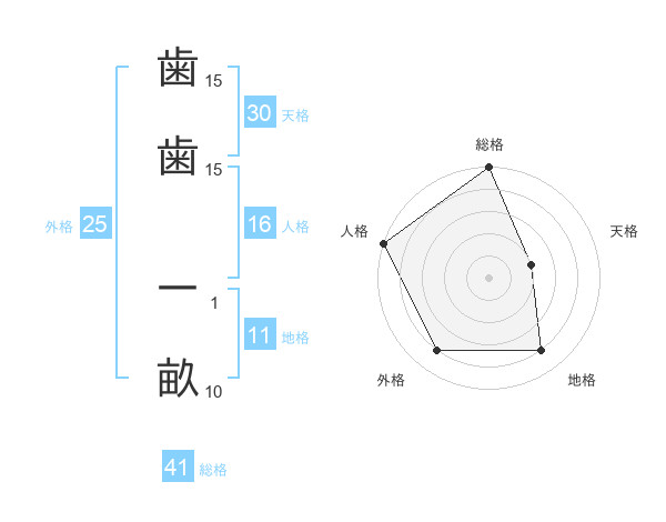 歯歯 一畝さんの総格は41画の5点!