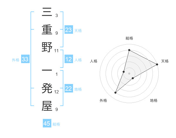 三重野 一発屋さんを姓名の画数から五運を鑑定