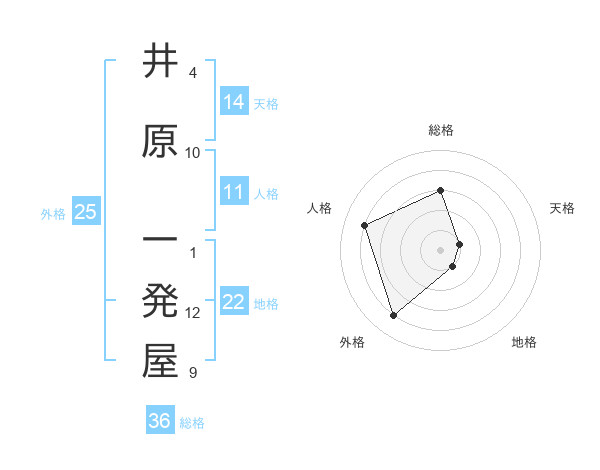 井原 一発屋さんを姓名の画数から五運を鑑定