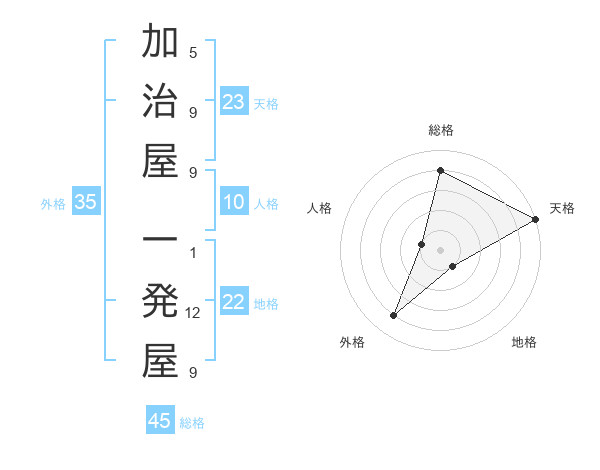 加治屋 一発屋さんの総格は45画の4点!