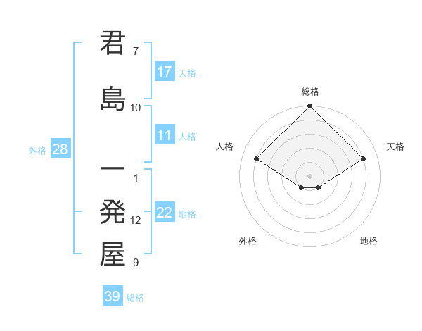 君島 一発屋さんを姓名の画数から五運を鑑定