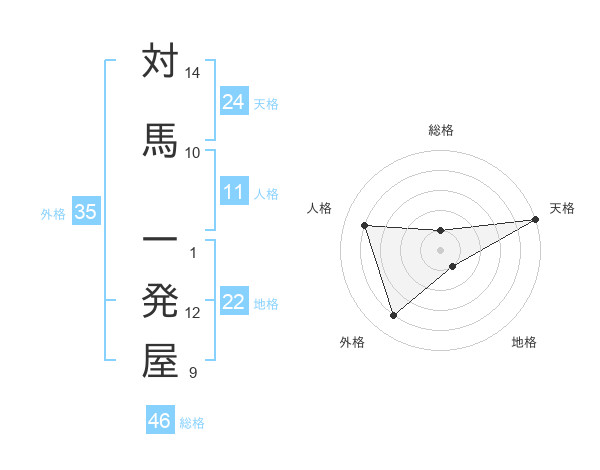 対馬 一発屋さんの総格は46画の1点!