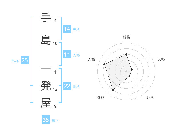 手島 一発屋さんを姓名の画数から五運を鑑定