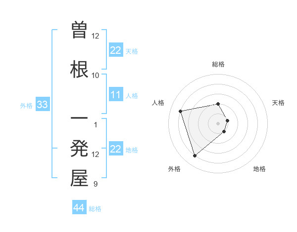 曽根 一発屋さんの総格は44画の2点!
