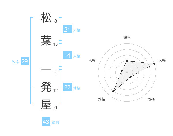 松葉 一発屋さんの総格は43画の2点!