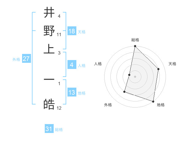 井野上 一皓さんを姓名の画数から五運を鑑定
