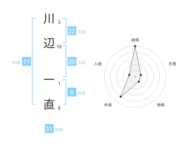 川辺 一直さんの総格は31画の5点!