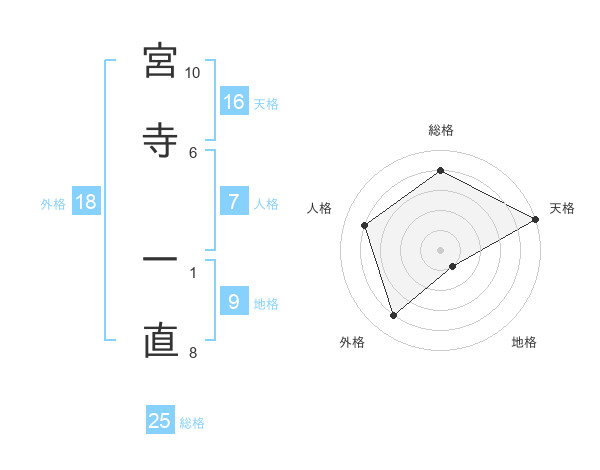 宮寺 一直さんの天格は16画の5点!