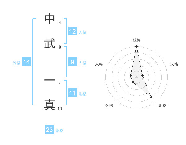 中武 一真さんの総格は23画の5点!