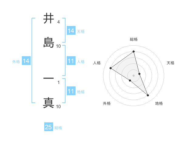 井島 一真さんの総格は25画の4点!