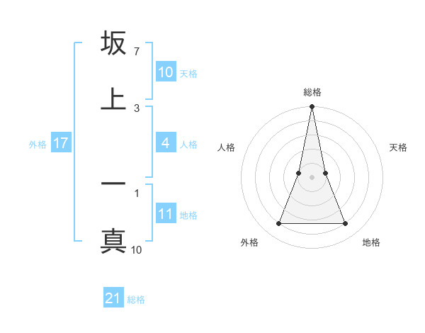 坂上 一真さんの総格は21画の5点!