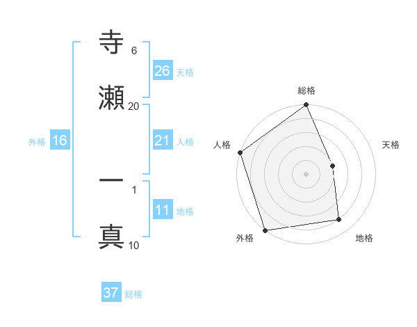 寺瀬 一真さんを姓名の画数から五運を鑑定