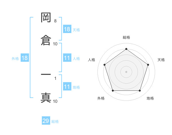 岡倉 一真さんを姓名の画数から五運を鑑定