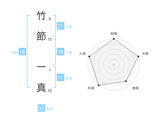 竹節 一真さんの総格は32画の5点!
