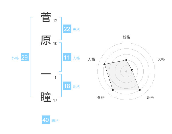 菅原 一瞳さんの天格は22画の1点!