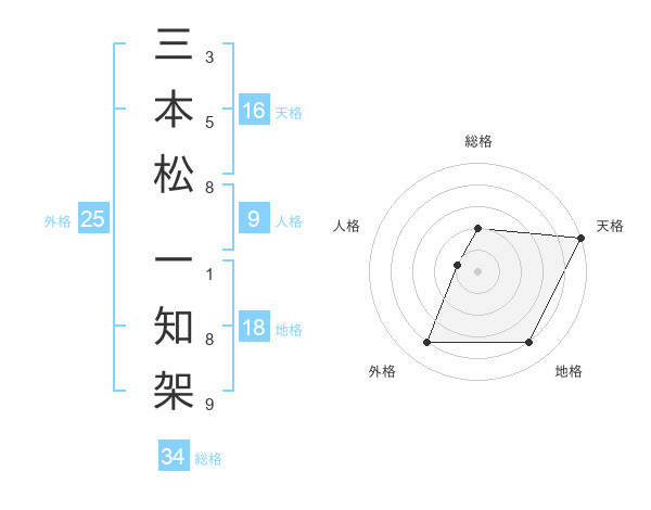 三本松 一知架さんを姓名の画数から五運を鑑定