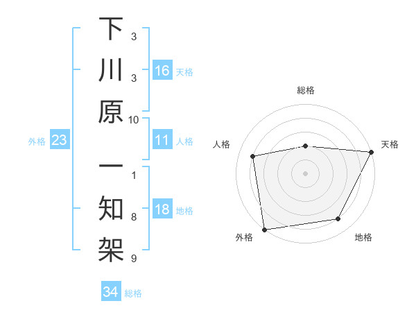 下川原 一知架さんを姓名の画数から五運を鑑定