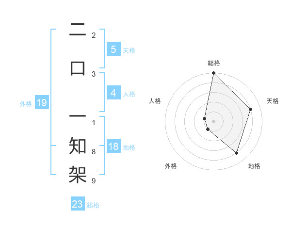 二口 一知架さんの総格は23画の5点!