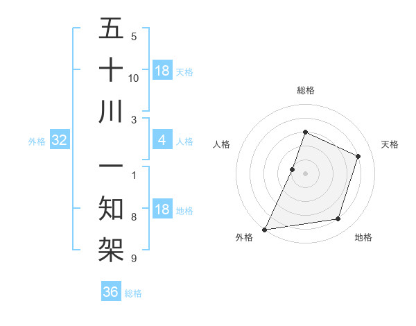 五十川 一知架さんを姓名の画数から五運を鑑定