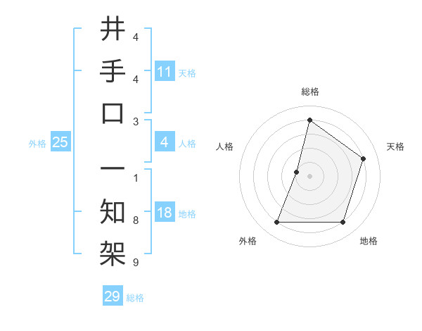 井手口 一知架さんを姓名の画数から五運を鑑定