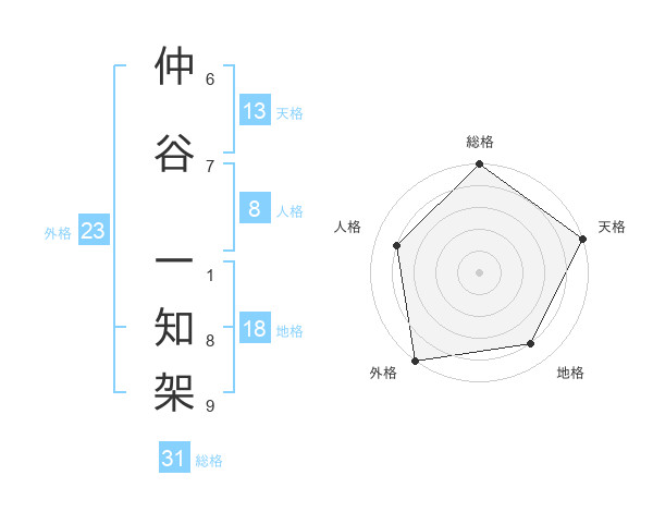 仲谷 一知架さんを姓名の画数から五運を鑑定
