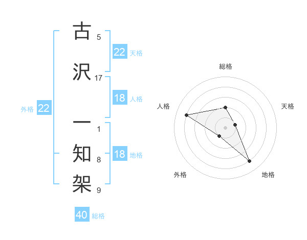 古沢 一知架さんの外格は22画の1点!
