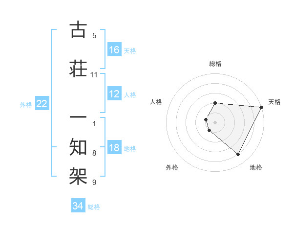 古荘 一知架さんを姓名の画数から五運を鑑定