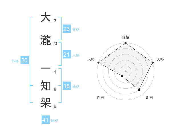 大瀧 一知架さんの天格は23画の5点!