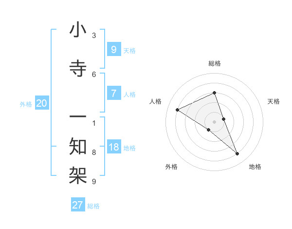 小寺 一知架さんを姓名の画数から五運を鑑定