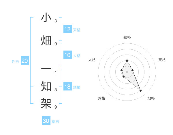 小畑 一知架さんを姓名の画数から五運を鑑定