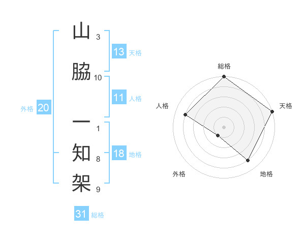 山脇 一知架さんを姓名の画数から五運を鑑定