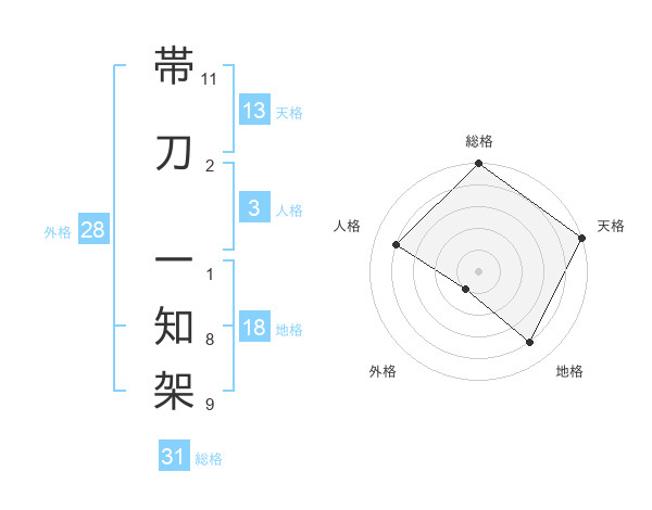 帯刀 一知架さんの総格は31画の5点!