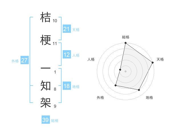桔梗 一知架さんの総格は39画の5点!