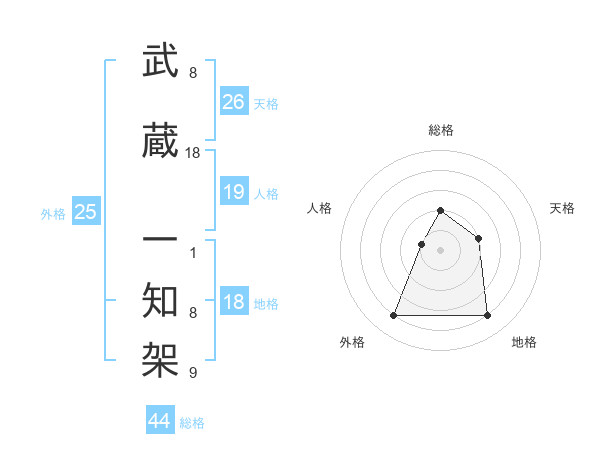 武蔵 一知架さんを姓名の画数から五運を鑑定