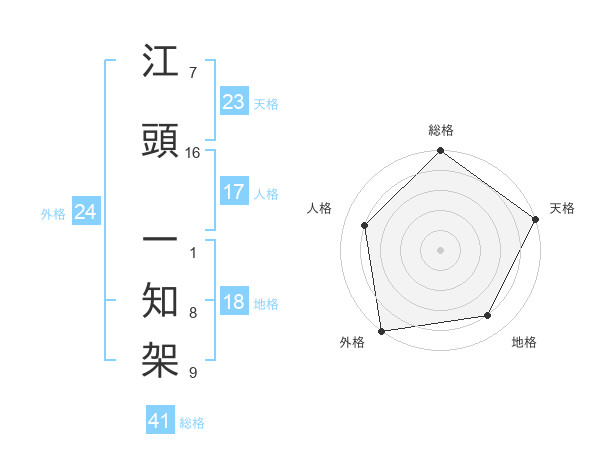 江頭 一知架さんを姓名の画数から五運を鑑定