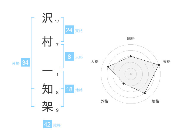 沢村 一知架さんを姓名の画数から五運を鑑定