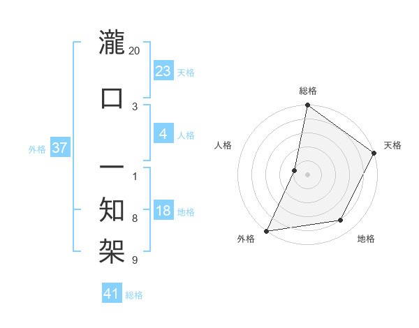 瀧口 一知架さんを姓名の画数から五運を鑑定
