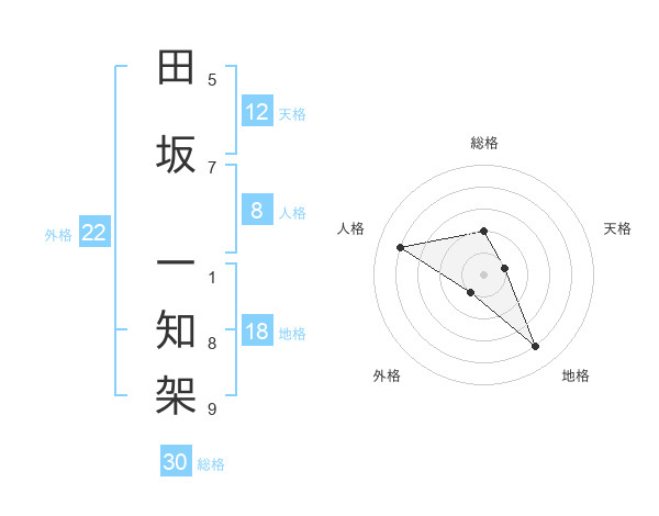 田坂 一知架さんを姓名の画数から五運を鑑定