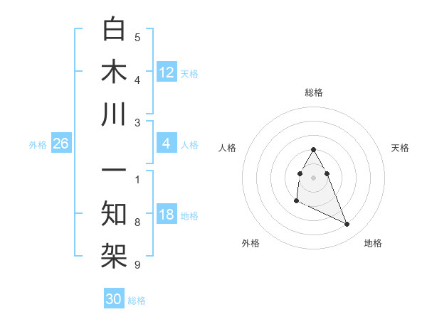 白木川 一知架さんを姓名の画数から五運を鑑定
