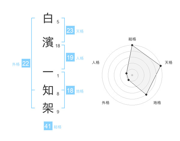 白濱 一知架さんの天格は23画の5点!