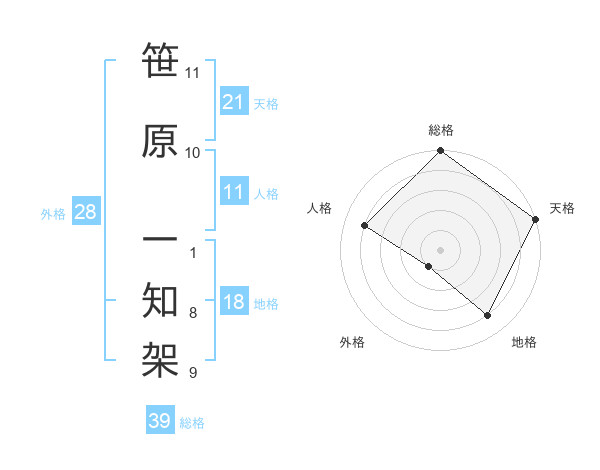 笹原 一知架さんを姓名の画数から五運を鑑定
