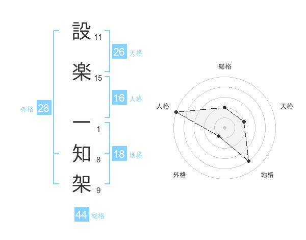 設楽 一知架さんを姓名の画数から五運を鑑定