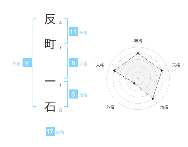 反町 一石さんの総格は17画の4点!