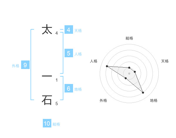 太 一石さんの総格は10画の1点!