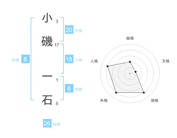 小磯 一石さんの天格は20画の1点!
